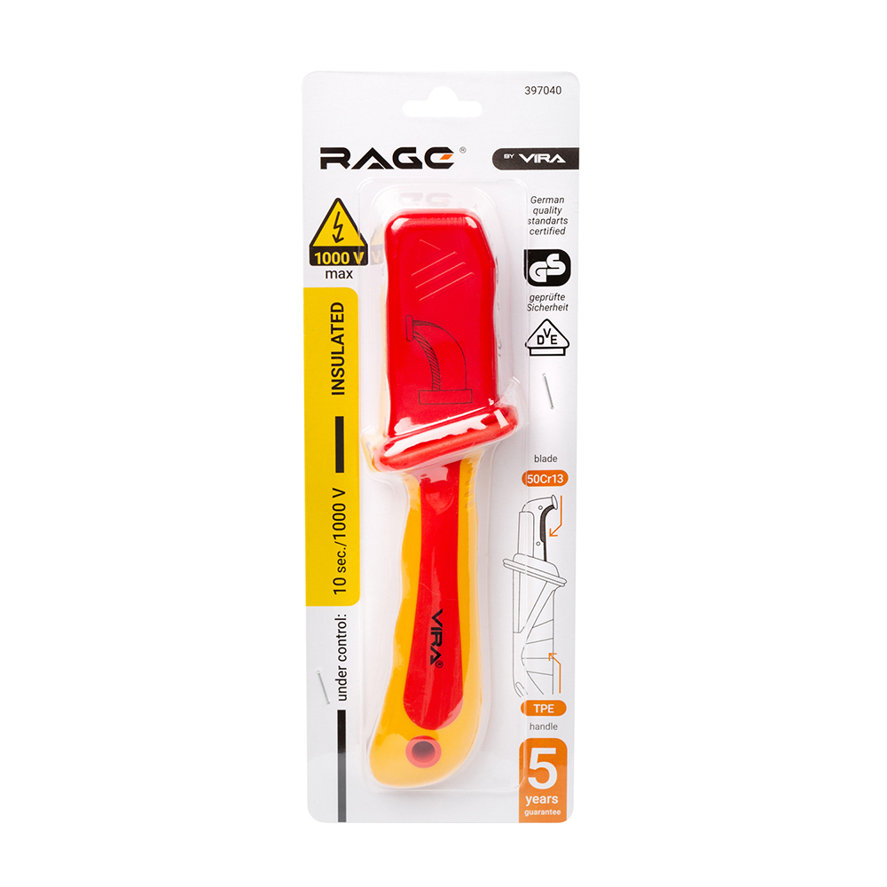 Нож диэлектрический 180 мм 1000 В Rage by Vira для резки и зачистки проводов