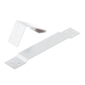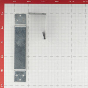 Состоит из уголка с петлей и кронштейна изготовленных из оцинкованной стали.
