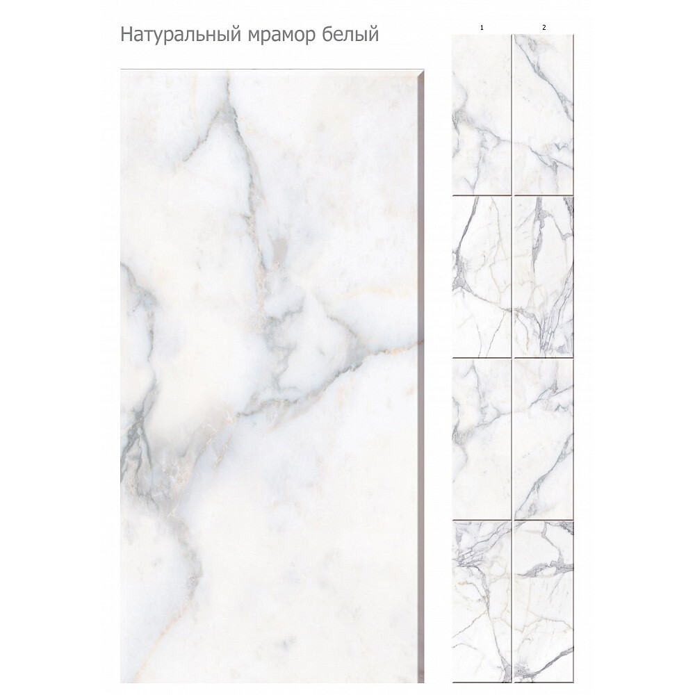 Панель ПВХ 250х2700х8 мм Кронапласт бесшовная цифровая печать натуральный мрамор белый 1,35 кв.м (2 шт.)