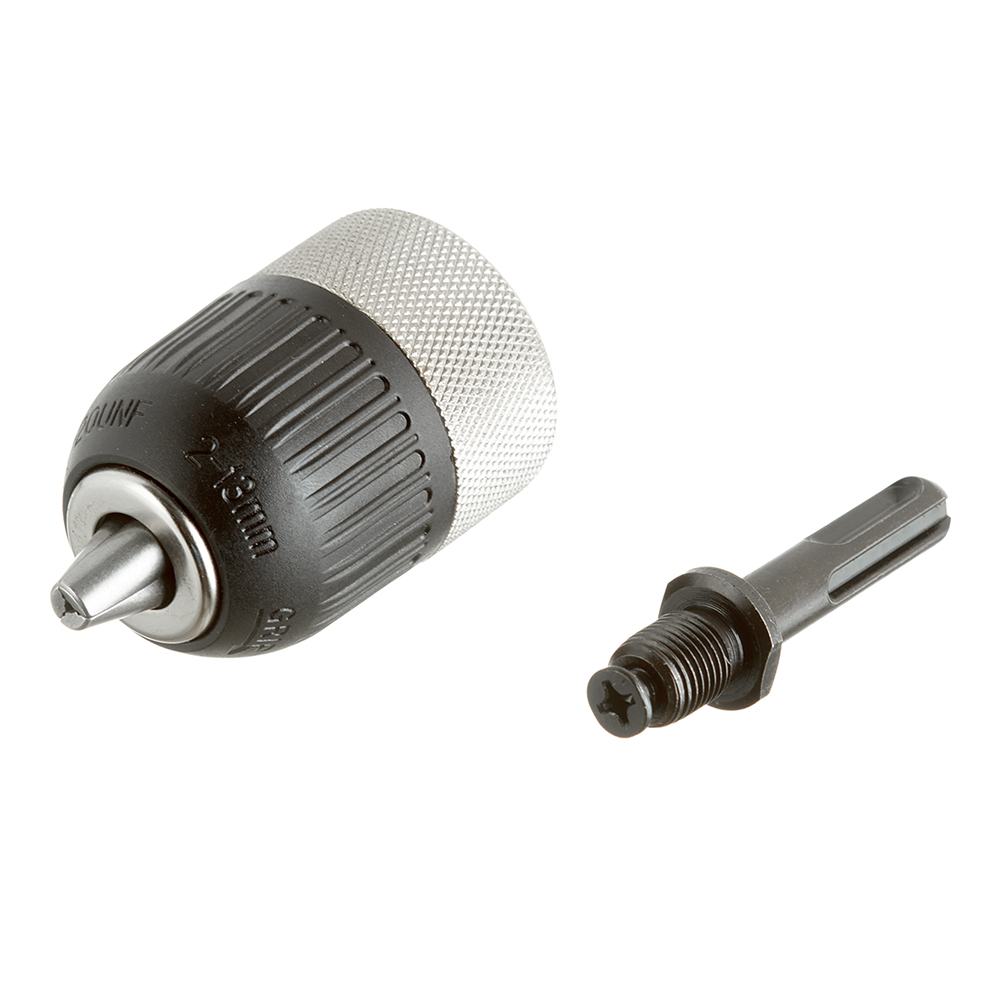 Предназначен для установки сверл диаметром до 13 мм на ручные и электрические дрели с посадочной резьбой 1/2″, а также на перфораторы с системой крепления SDS-plus. Установка на перфораторы осуществляется только с помощью переходника (адаптера).