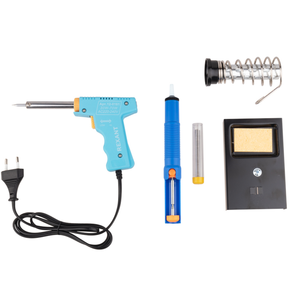 Паяльник-пистолет электрический Rexant 30/70 Вт 230 В с подставкой и оловоотсосом (12-0164)