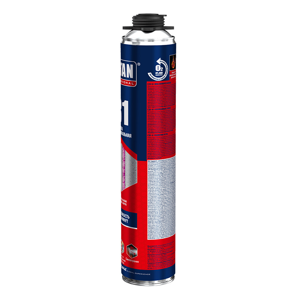 Однокомпонентная полиуретановая пена. Обладает хорошей адгезией к большинству строительных материалов кроме полипропилена, полиэтилена и силикона.
