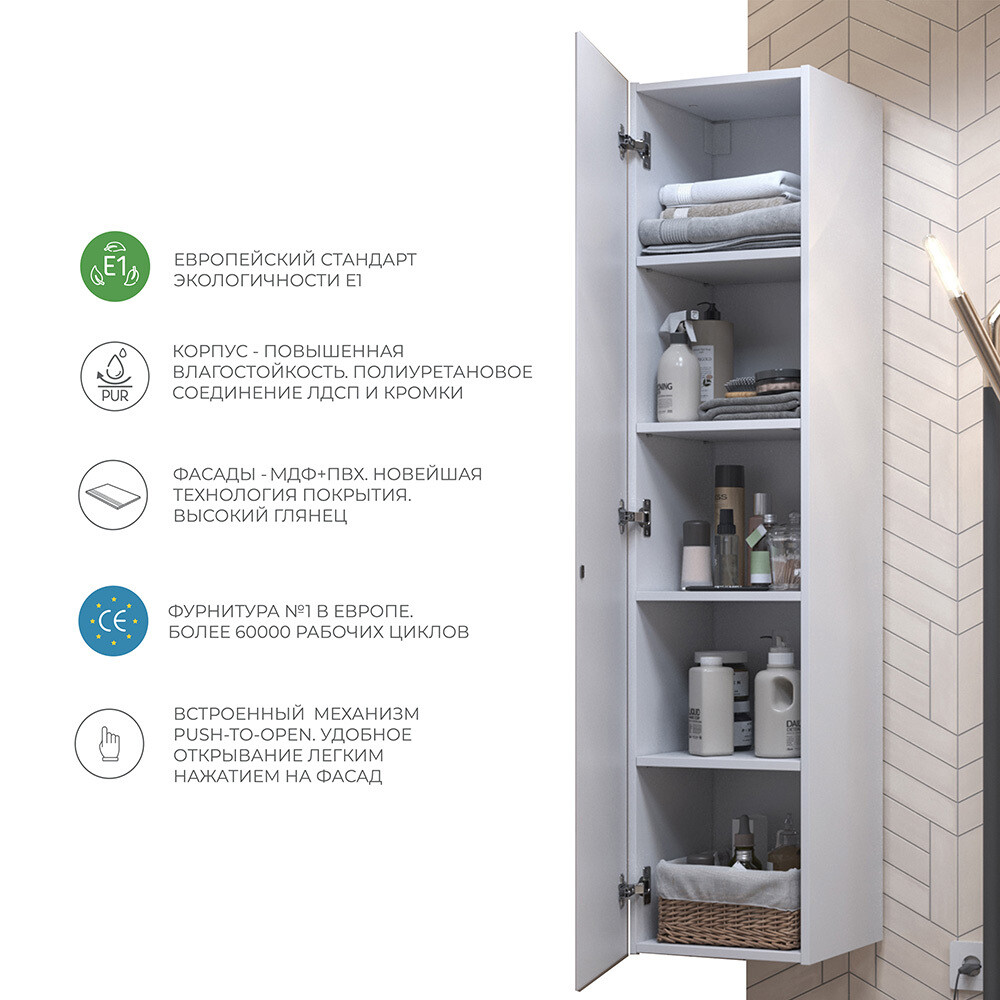 Шкаф навесной Glem 350 выполнен из качественных материалов, что обеспечивает долгий срок службы изделия.