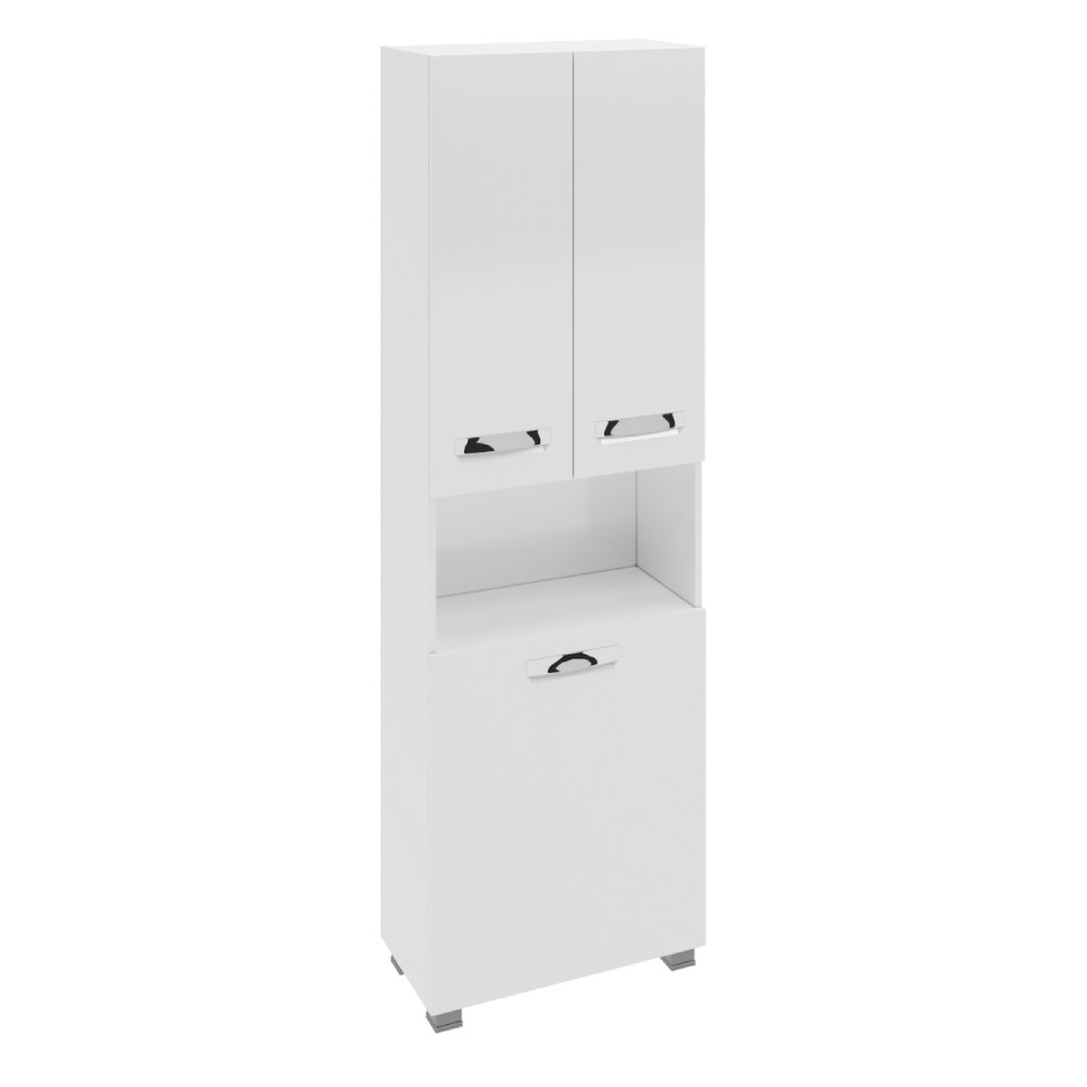 Комплектация: пенал в собранном виде, полки — 3 шт., опора квадратная регулируемая Н-52 мм хром матовый — 4 шт., петля накладная — 2 шт., петля накладная доводчик — 2 шт, бельевая корзина.