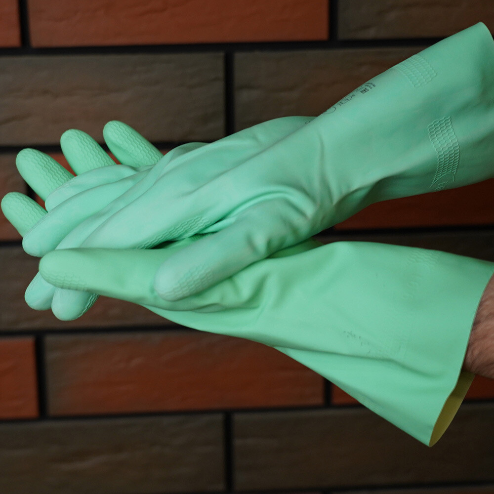 Предназначены для защиты рук. Применяются при работах с растворами кислот и щелочей, их солей, с сыпучими и красящими химическими веществами, а также допущены к контакту с пищевыми продуктами.