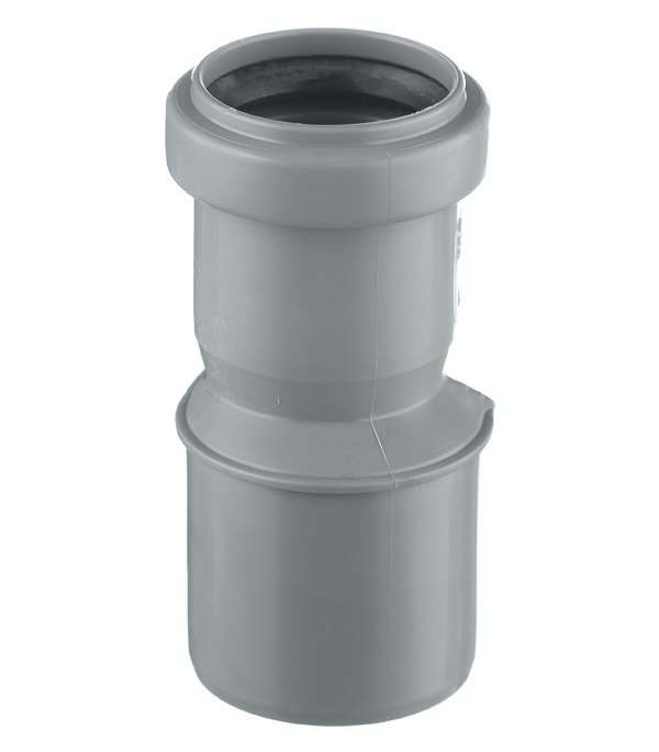 Внутренняя система канализации Ostendorf HT. Переход эксцентрический (редукция) предназначен для перехода с гладкой части трубы или фитинга меньшего диаметра на раструб трубы или фитинга большего диаметра. Переход выполнен снаружи раструба большего диаметра.