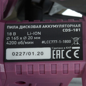 Пила дисковая аккумуляторная КМ АТОМ 18 В d165 мм без АКБ и ЗУ (СDS-181)