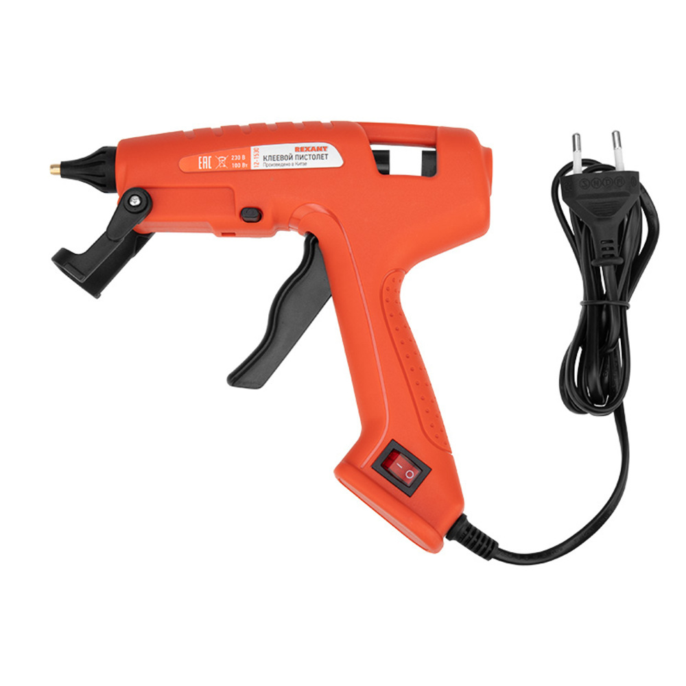 Пистолет клеевой Rexant (100 Вт, Ø11 мм, «ЭКСПЕРТ») предназначен для прочной фиксации поверхностей с помощью расплавленной клеевой массы.