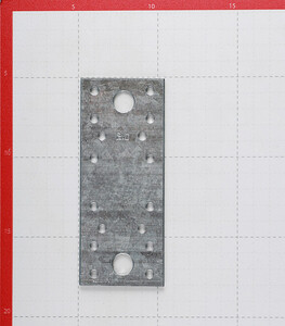 Изготовлена из оцинкованной стали. Имеет отверстия диаметром 5 мм под саморезы или гвозди и 13 мм под болты или штанги с резьбой.