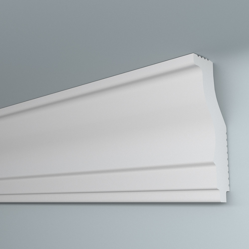 Предназначен для внутренней декоративной отделки жилых помещений. Классическая модель плинтуса может использоваться как для обычного так и для натяжного потолка, благодаря увеличенной монтажной области по стене, а также форме клеевых бороздок, позволяющих монтировать плинтус на одну клеевую поверхность. Имеет высокую плотность, гладкую матовую поверхность. Оптимальная плотность потолочного плинтуса обеспечивает однородность структуры, а незначительный вес создает дополнительные удобства при монтаже. Не требует обязательной окраски. Крепится к стене и потолку при помощи шпаклевки или жидких гвоздей.