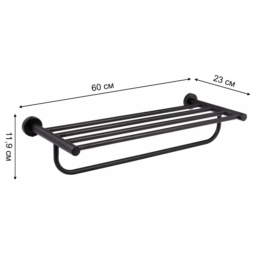Полка для ванной Zenfort с полотенцедержателем 600х230х120 мм металл черная (180066)