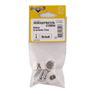Полкодержатель-стяжка d20 мм белый со штоком 11 мм (4 шт.)