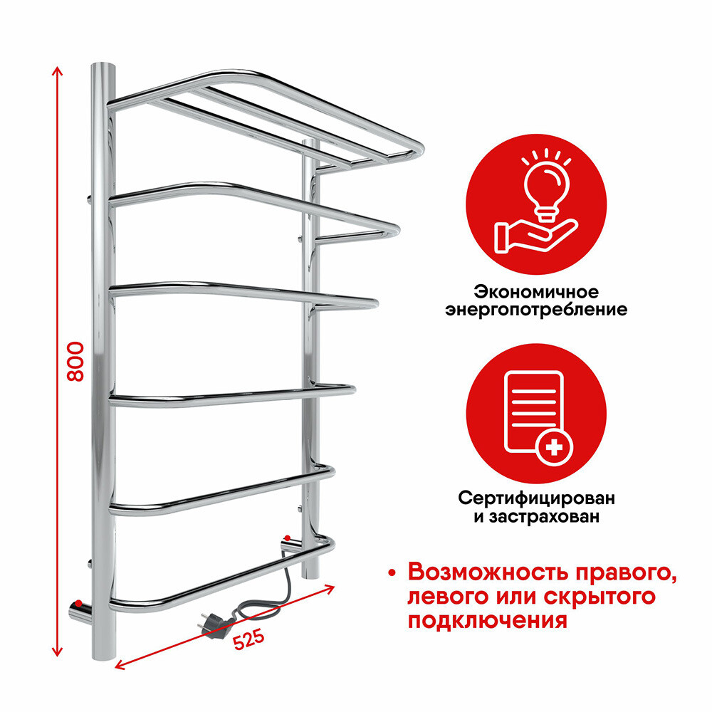 Полотенцесушитель электрический Indigo Hit 800х525 мм 90 Вт хром