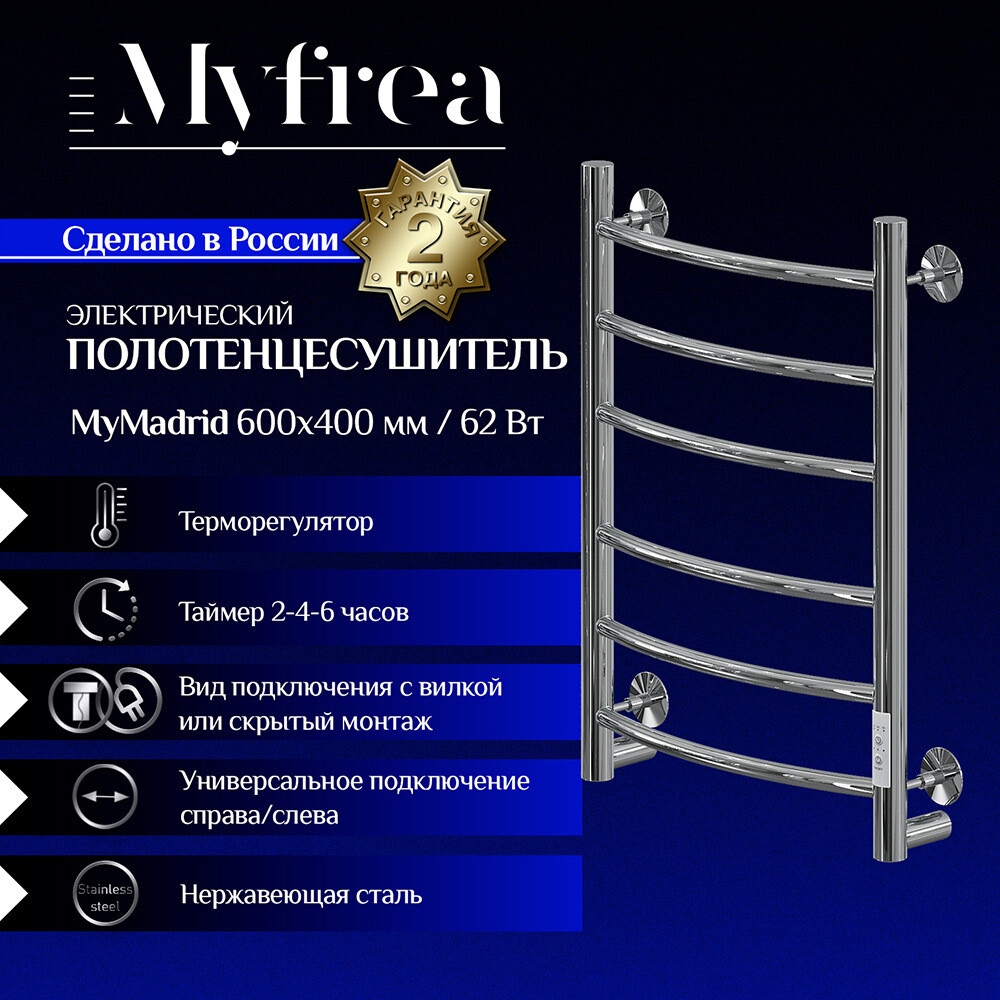 Полотенцесушитель электрический MyFrea MyMadrid 600х400 мм 62 Вт с терморегулятором хром
