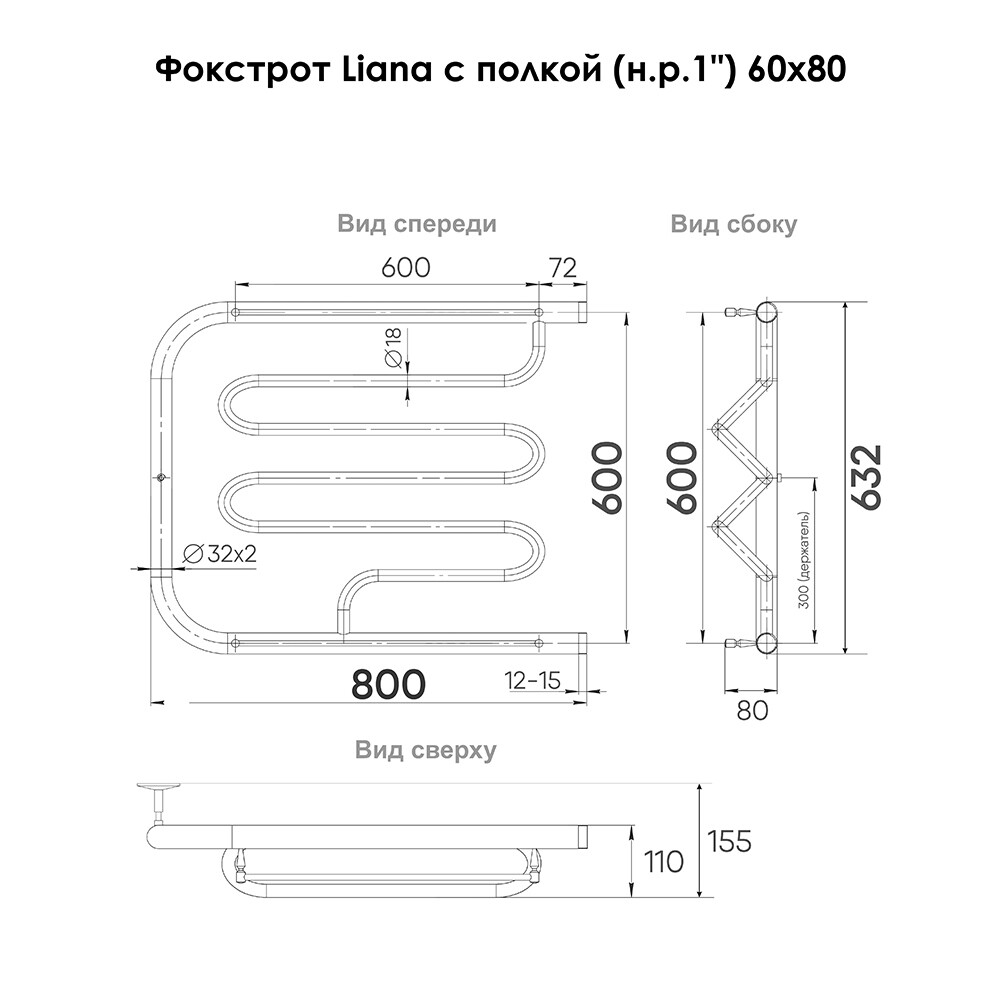 Полотенцесушитель водяной Indigo Liana 600х800 мм фокстрот с боковым подключением 320 мм с полкой хром