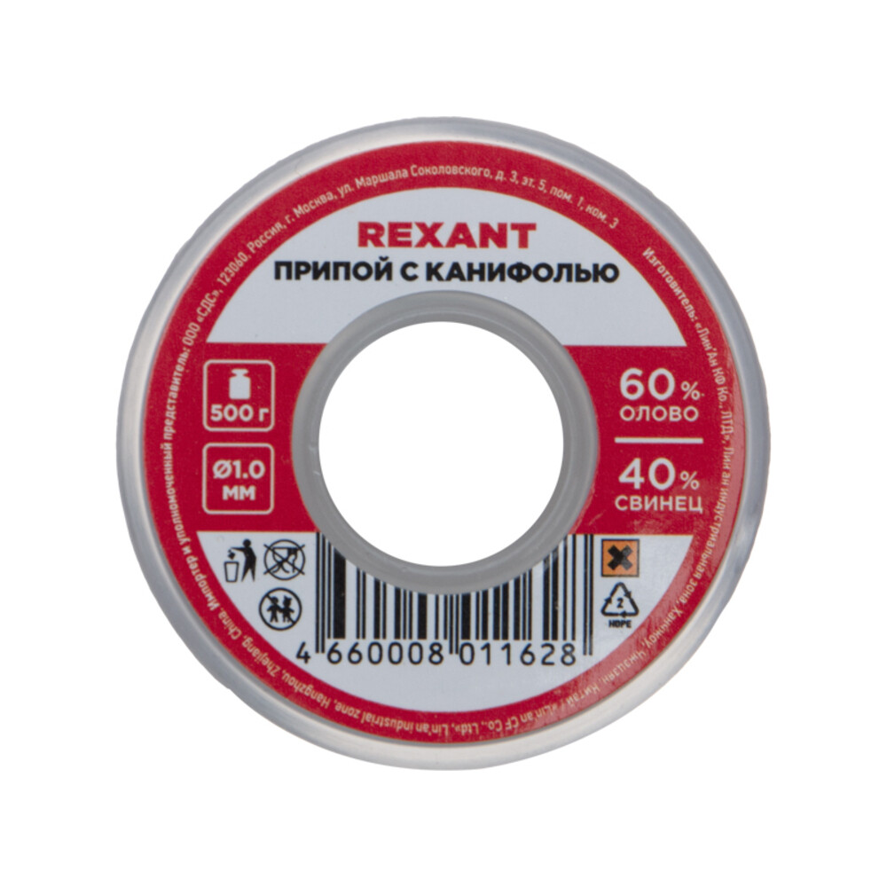 Припой Rexant d1 Sn60 Pb40 Flux 2.2% с канифолью 500 г (09-3363)