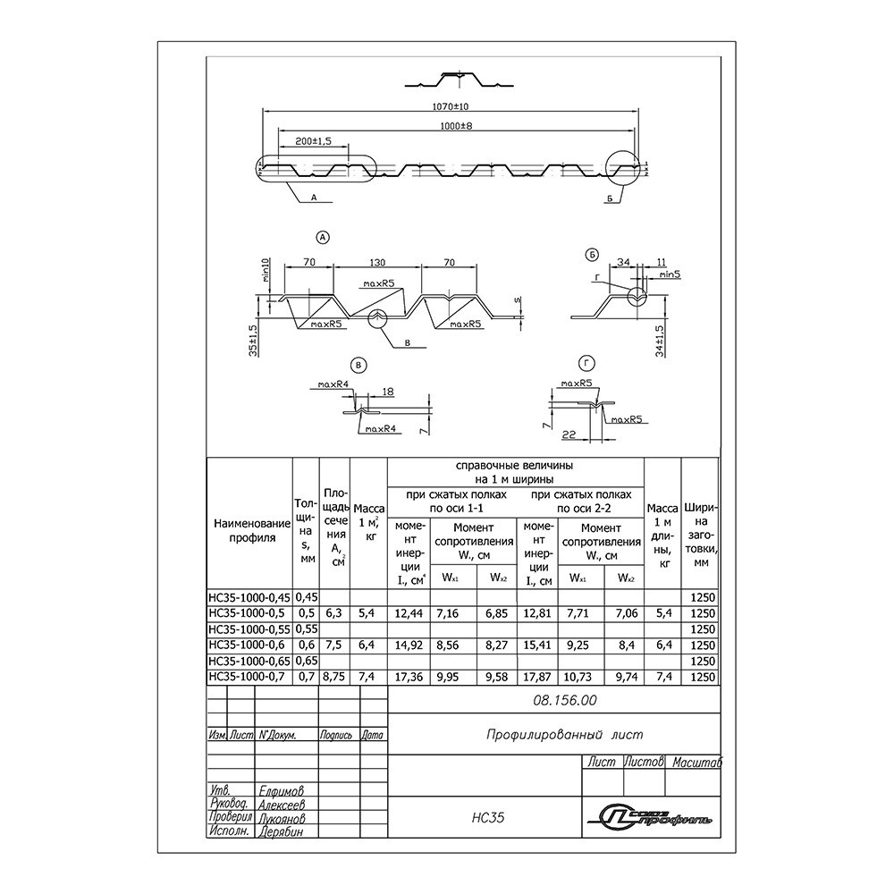 Профнастил НС35 1,06х2 м 0,5 мм оцинкованный
