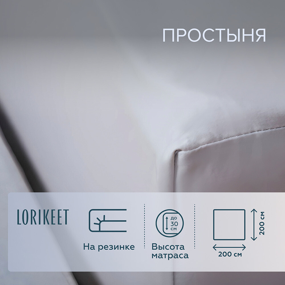 Простыня на резинке 200х200х30 см сатин серая Lorikeet Solo
