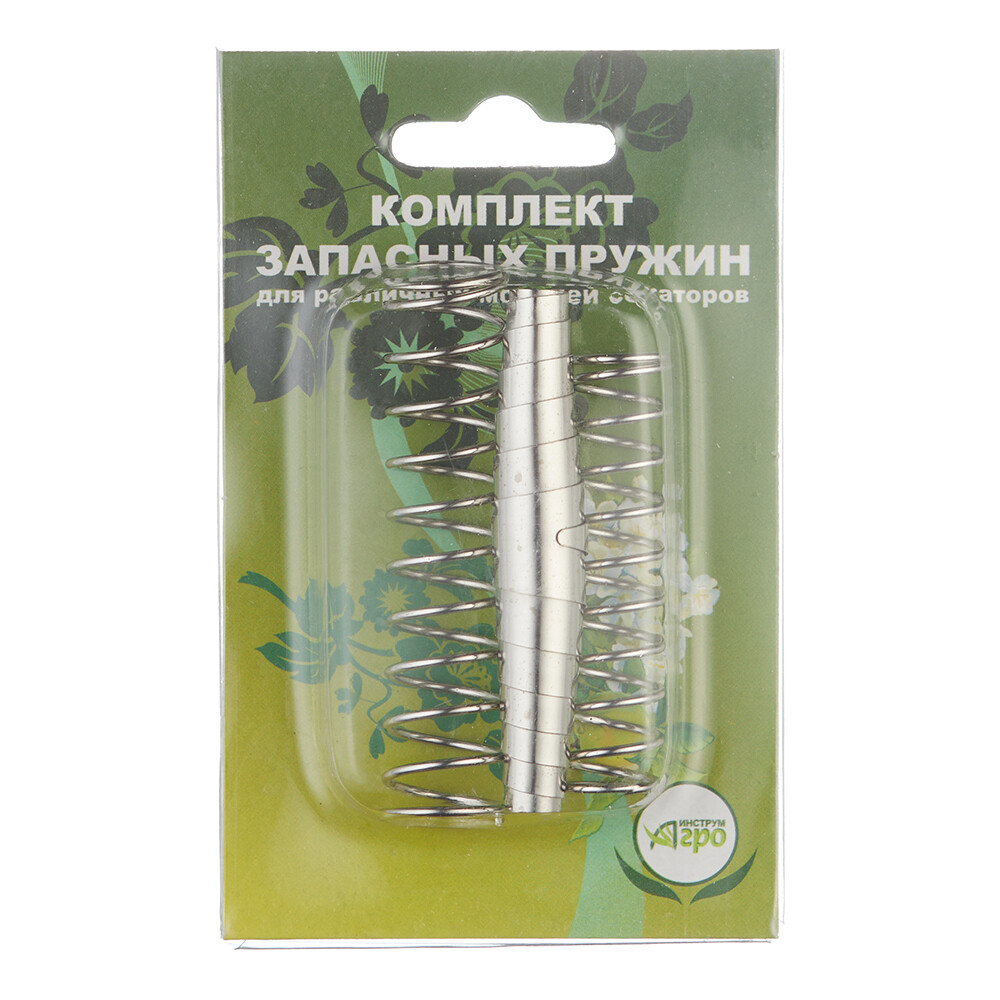 Комплект запасных пружин к секаторам. В наборе 2 витых пружины разной длины и 1 ленточная. Материал пружин – сталь. Подходит к различным моделям секаторов. Поставляется в блистерной упаковке для удобства навески.