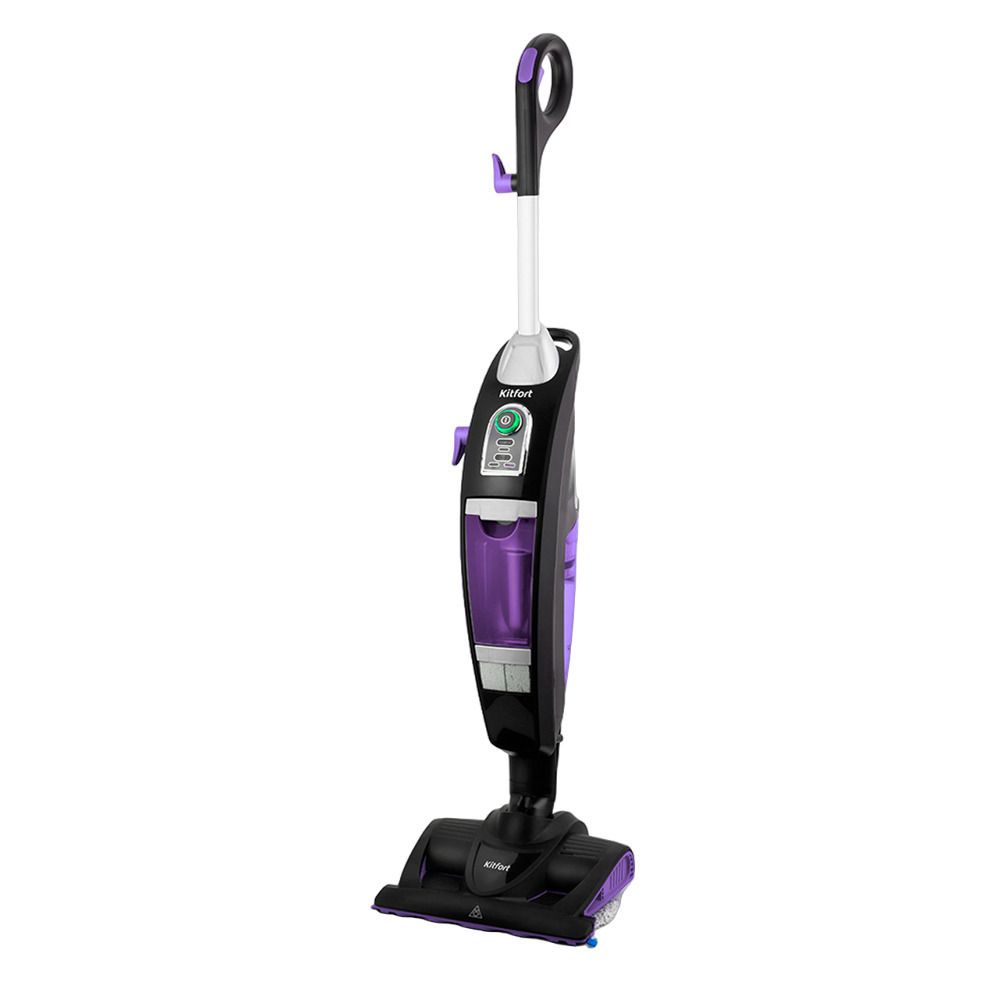 Паровым пылесосом Kitfort КТ-535 с функцией вертикальной парковки можно пользоваться как пылесосом и паровой шваброй по отдельности и одновременно — всасывая пыль, мелкий мусор, очищая поверхность от грязи, въевшихся пятен и жира при помощи горячего пара. Пылесос с резервуаром для воды 730 мл и вместительным пылесборником 1 л удобен при локальной и генеральной уборке. Он в разы упрощает и делает её быстрее. Теперь веник, паровую швабру и пылесос можно заменить всего одним устройством — паровым пылесосом. Паровой пылесос можно использовать для уборки: паркета, ламината, линолеума, дерева, ковровых покрытий и керамической плитки. Он всасывает пыль и мелкий мусор, очищает поверхность от грязи, въевшихся пятен и жира, дезинфицирует при помощи горячего пара. В комплекте с пылесосом идут 2 тряпки. Они надеваются на съёмный держатель, который фиксируется на напольную щётку. Для снятия держателя с тряпкой нажмите ногой на педаль задней части щётки. У щётки также есть боковые щёточки для чистки плинтусов. Если необходимо, нажмите кнопку «Пар», чтобы выбрать нужный уровень пара: Мин — водостойкая древесина, «Макс» — плитка, камень. Кнопка «Пылесос» включает всасывание. Пылесос оборудован современным циклонным фильтром, обеспечивающим постоянную мощность всасывания. В пылесборнике установлен блок из нескольких фильтров, которые задерживают мельчайшие частички пыли и аллергены. Фильтры можно вынуть и промыть водой. На задней части корпуса имеется удобная ручка для переноски. Чтобы шнур не мешался во время уборки, вы можете намотать лишнюю длину на крючки, располагаемые на корпусе и ручке пылесоса. Имеет функцию вертикальной парковки, что очень удобно для хранения.