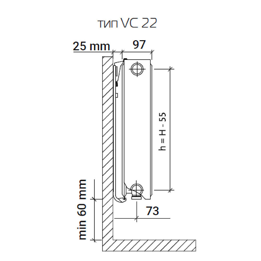 Заглушка и воздухоотводчик предустановлены в радиатор в заводских условиях. Благодаря специальным рельсовым кронштейнам и отсутствию монтажных скоб на тыльной стороне радиатора, обе панели радиатора можно использовать в качестве лицевой стороны.