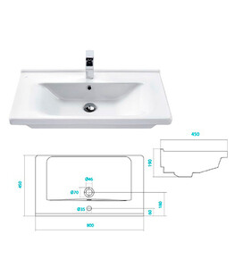 Предназначена для ванной комнаты. Имеет отверстие для установки смесителя.