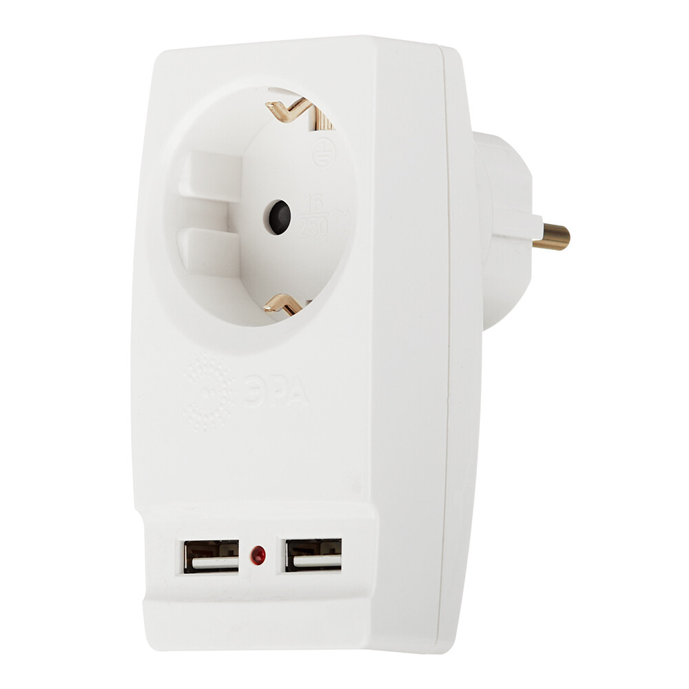 Разветвитель 1 розетка Эра 16 А 220 В 3,5 кВт 2хUSB белый (Б0026332)