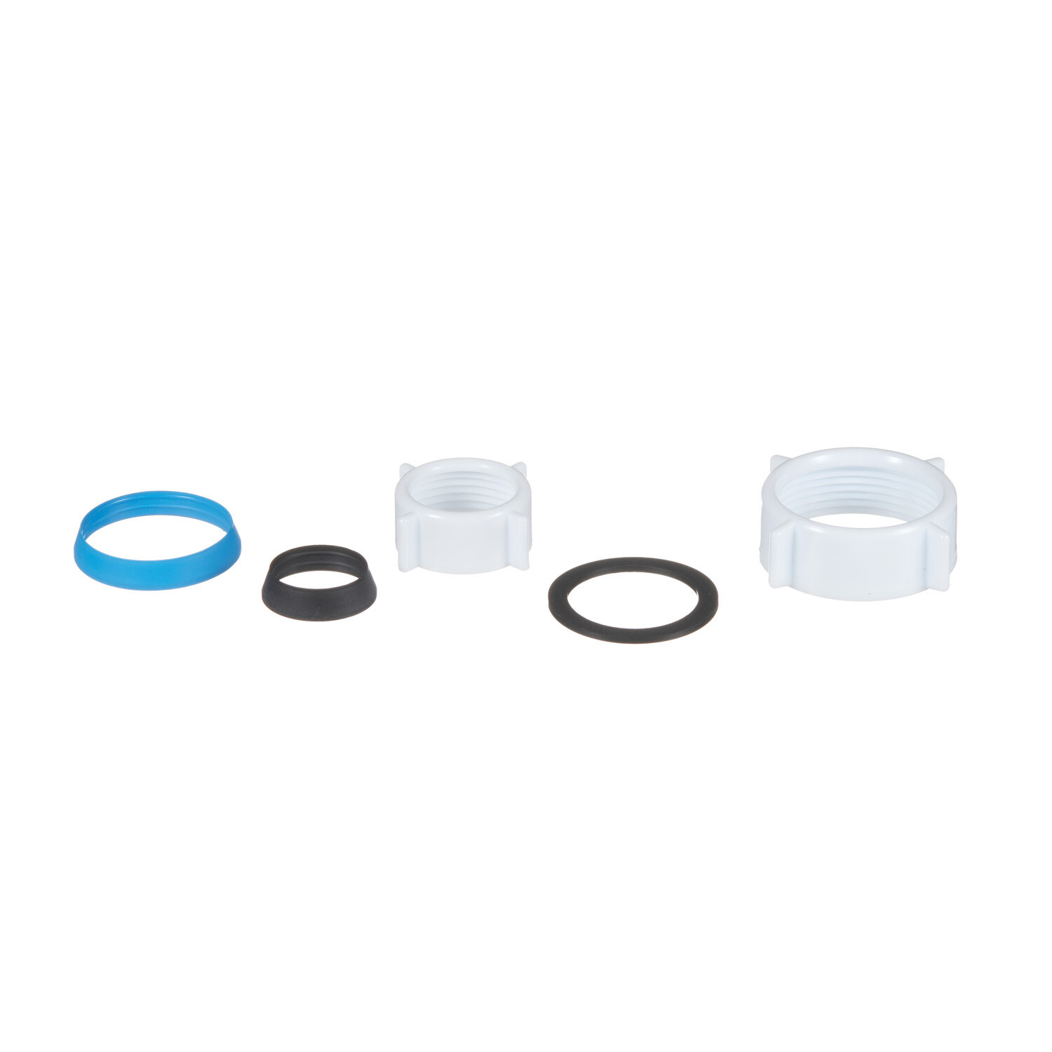 Комплектация: Гайка накидная 1 1/2″х40 — 1 шт., прокладка коническая 40 мм — 1 шт., прокладка плоская 1 1/2″ — 1 шт., прокладка коническая 25 мм — 1 шт., гайка накидная 1″ — 1 шт.