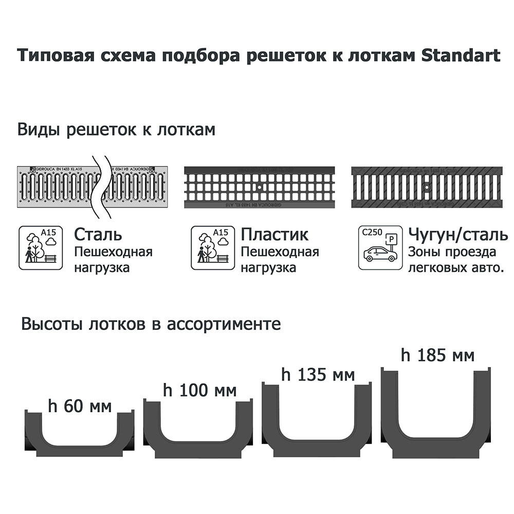Решетка для лотка водоотводного чугунная 500х136 мм Gidrolica черная