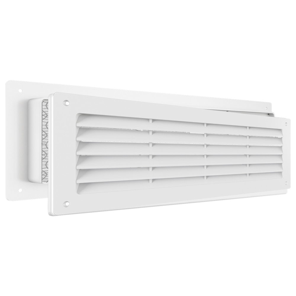 Для установки в мебель, в двери ванных комнат, туалетов, кухонь и т.д. Может устанавливаться в подоконники для правильного распределения теплого воздуха от батарей центрального отопления. Способствует правильной циркуляции воздуха внутри помещений. Изготавливается из высококачественного пластика. Крепление при помощи шурупов непосредственно к дверному полотну или подоконнику.