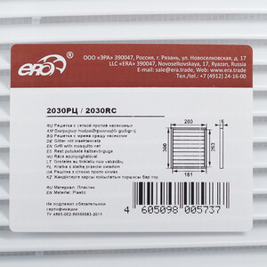 Решетка вентиляционная пластиковая приточно-вытяжная Era РЦ 200х300 мм с сеткой белая
