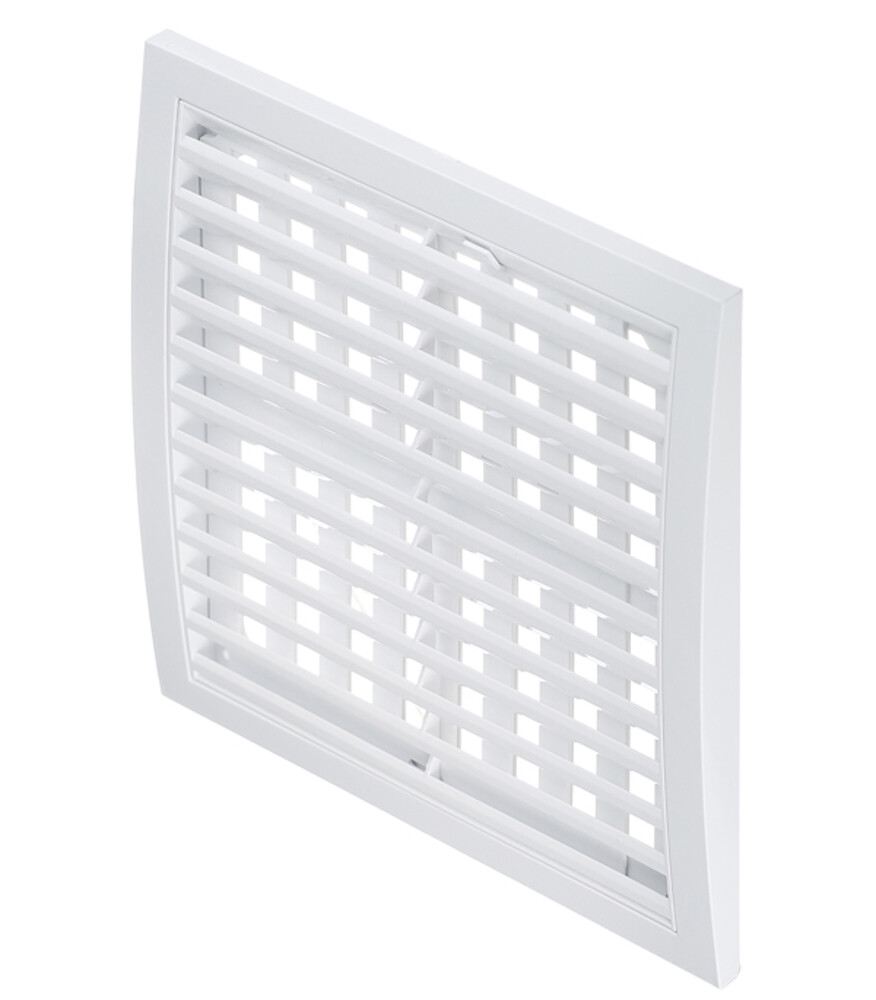 Для приточно-вытяжных систем вентиляции, систем кондиционирования и воздушного отопления. Для настенного или потолочного монтажа. Имеет наклонные жалюзи. Оснащена подвижной частью для регулировки расхода воздуха. Регулировка живого сечения осуществляется при помощи флажка. Благодаря съёмной лицевой части, разъёмная решётка позволяет без демонтажа всего изделия производить ревизионный осмотр и очистку вентиляционного отверстия. Крепление осуществляется при помощи шурупов. Изготовлена из высококачественного пластика.