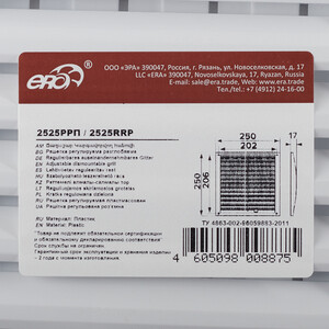 Решетка вентиляционная пластиковая приточно-вытяжная Era РРП 250х250 мм регулируемая белая