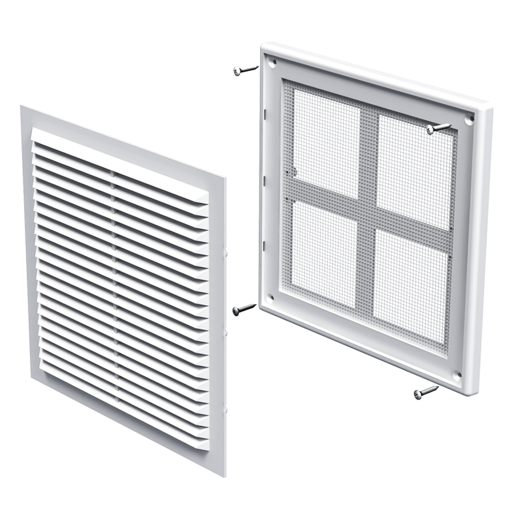 Применяется для декоративного оформления выходов приточных или вытяжных вентиляционных систем, а также для эффективного распределения воздушных потоков внутри помещений. Для настенного или потолочного монтажа. Изготавливается из качественного и высокопрочного пластика. Двуэлементная конструкция. Внутренняя часть крепится к основанию при помощи защелок для чистки без демонтажа решетки. Крепление при помощи шурупов. Решетка имеет наклонные ламели. Оснащена антимоскитной сеткой.
