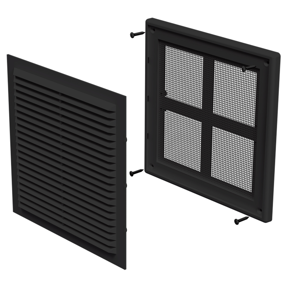 Решетка вентиляционная пластиковая приточно-вытяжная НашВент 204х204 мм с сеткой черная