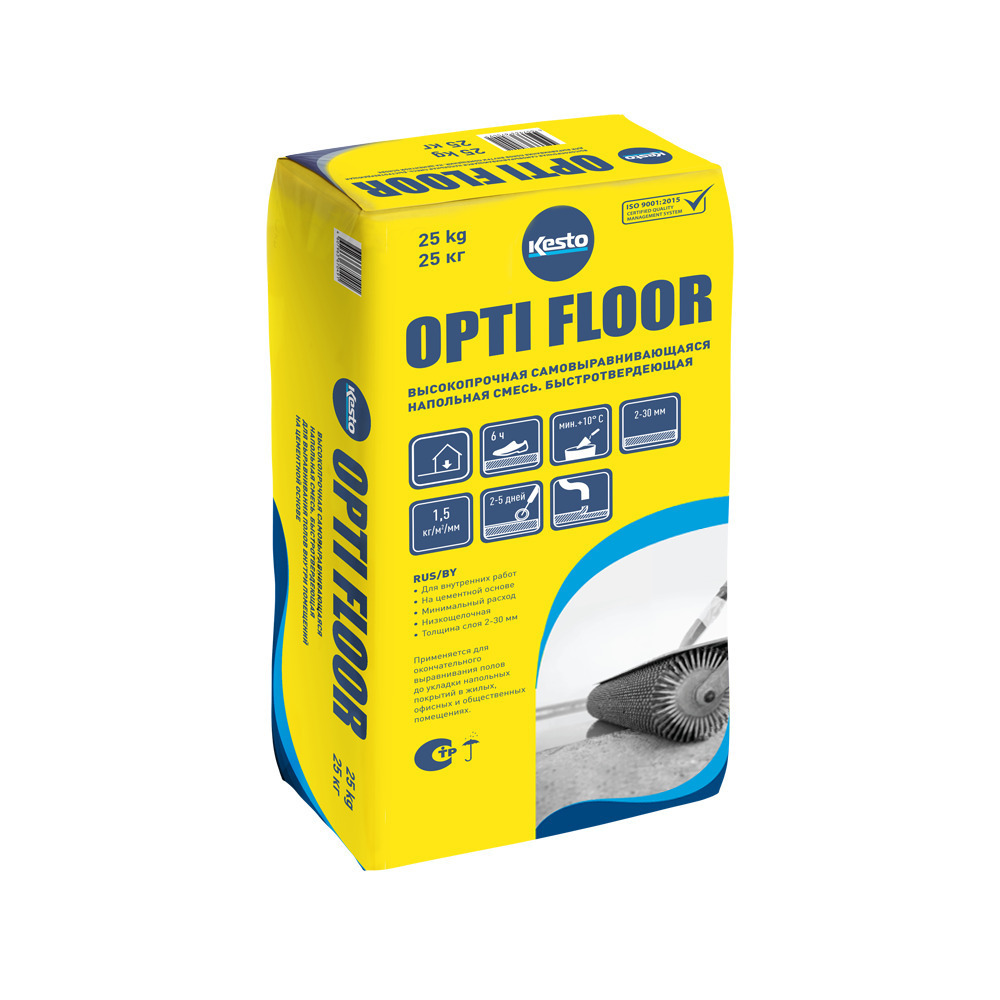 Ровнитель (наливной пол) финишный Kesto Opti Floor самовыравнивающийся быстротвердеющий 25 кг
