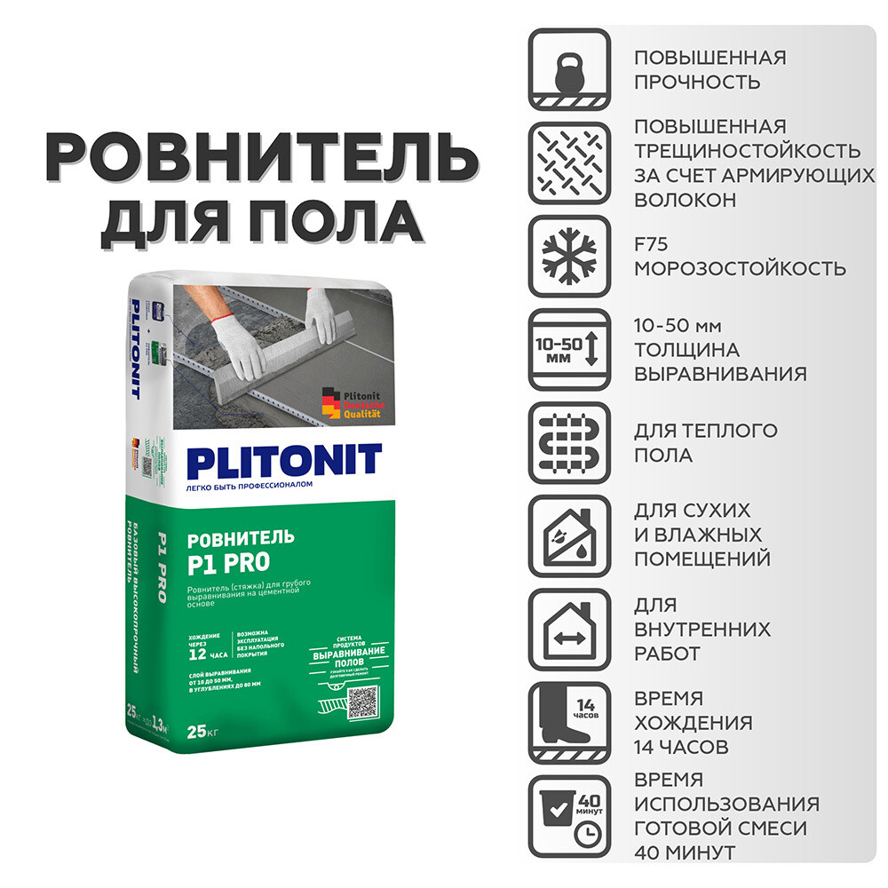 Ровнитель (стяжка пола) первичный Plitonit P1 PRO 25 кг