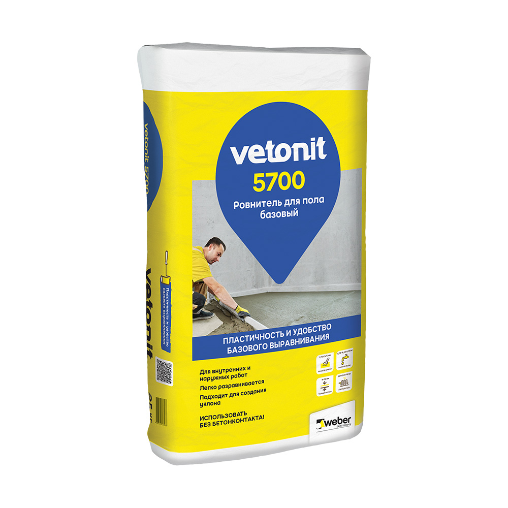 Ровнитель (стяжка пола) первичный Weber.vetonit 5700 Базовый на цементном вяжущем 25 кг