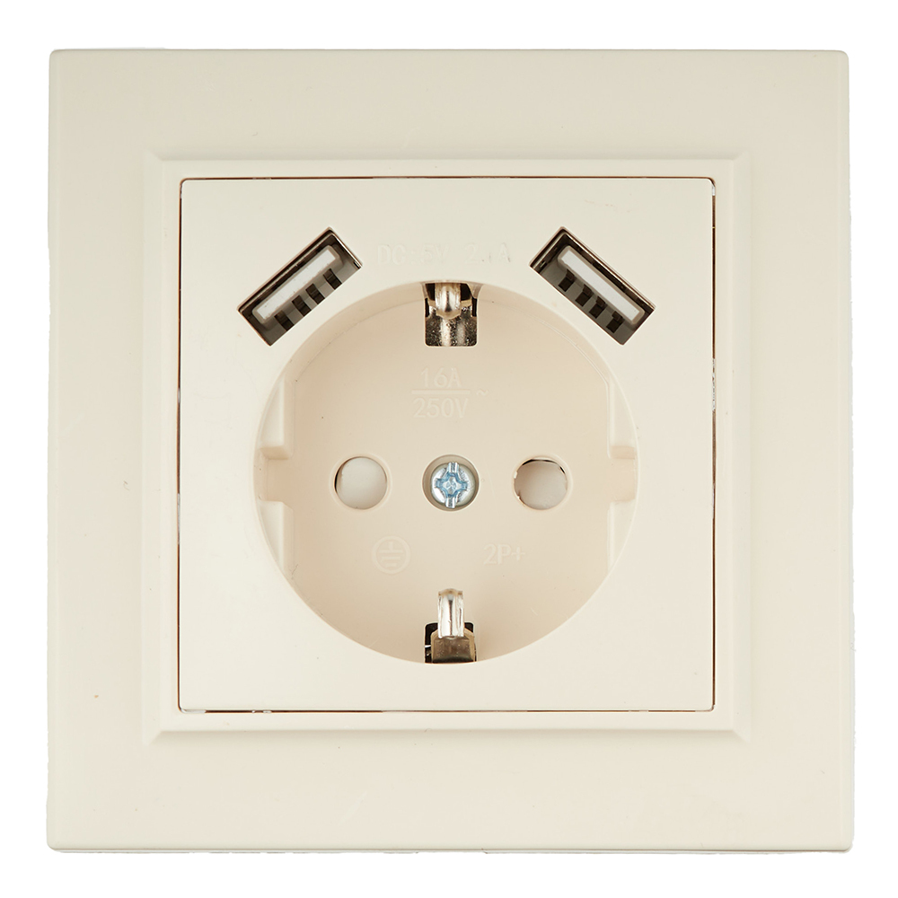 Розетка EKF Минск встраиваемая бежевая с 2хUSB-А (ERR16-028-200-2USB)