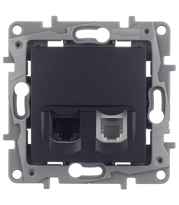 Розетка компьютерная/ телефонная Legrand Etika встраиваемая антрацит RJ11/ RJ45 (672652)
