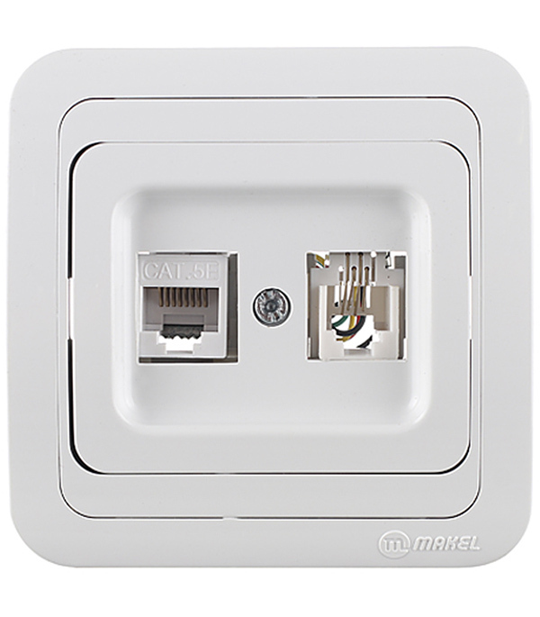 Розетка компьютерная/ телефонная Makel Mimoza встраиваемая белая RJ11/ RJ45 (12037)