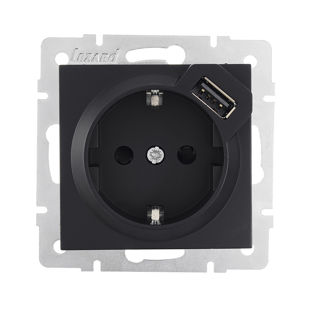 Розетка Lezard Vesna встраиваемая черный бархат с USB-A (742-4288-181)