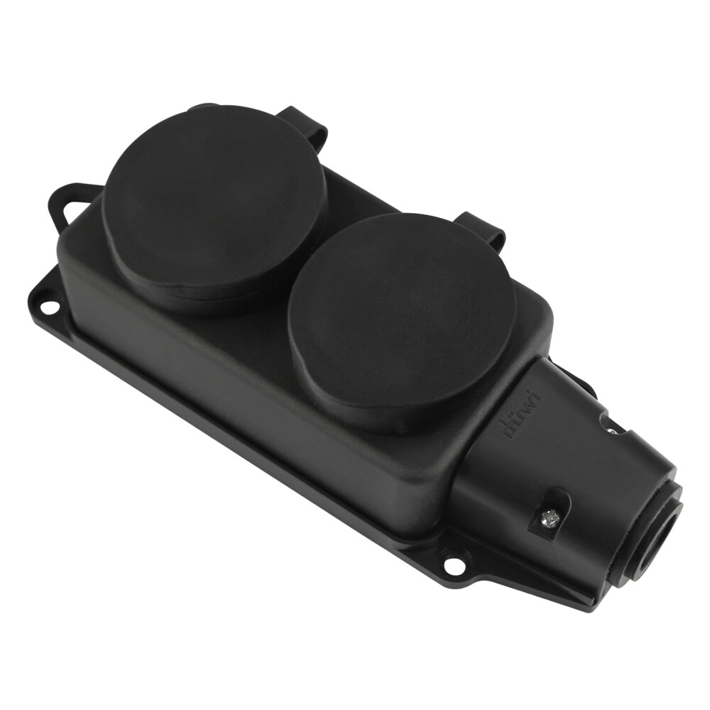 Розетка штепсельная Düwi двойная с заземлением IP44 настенная черная