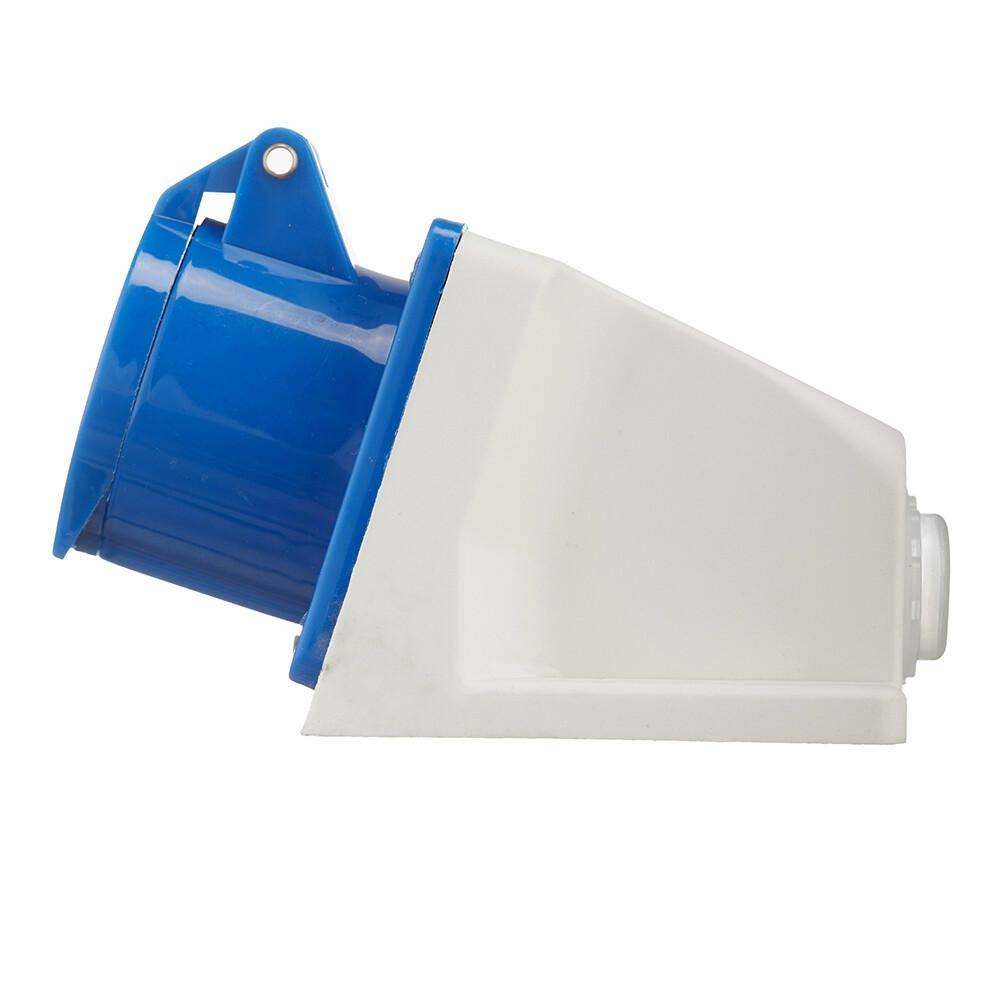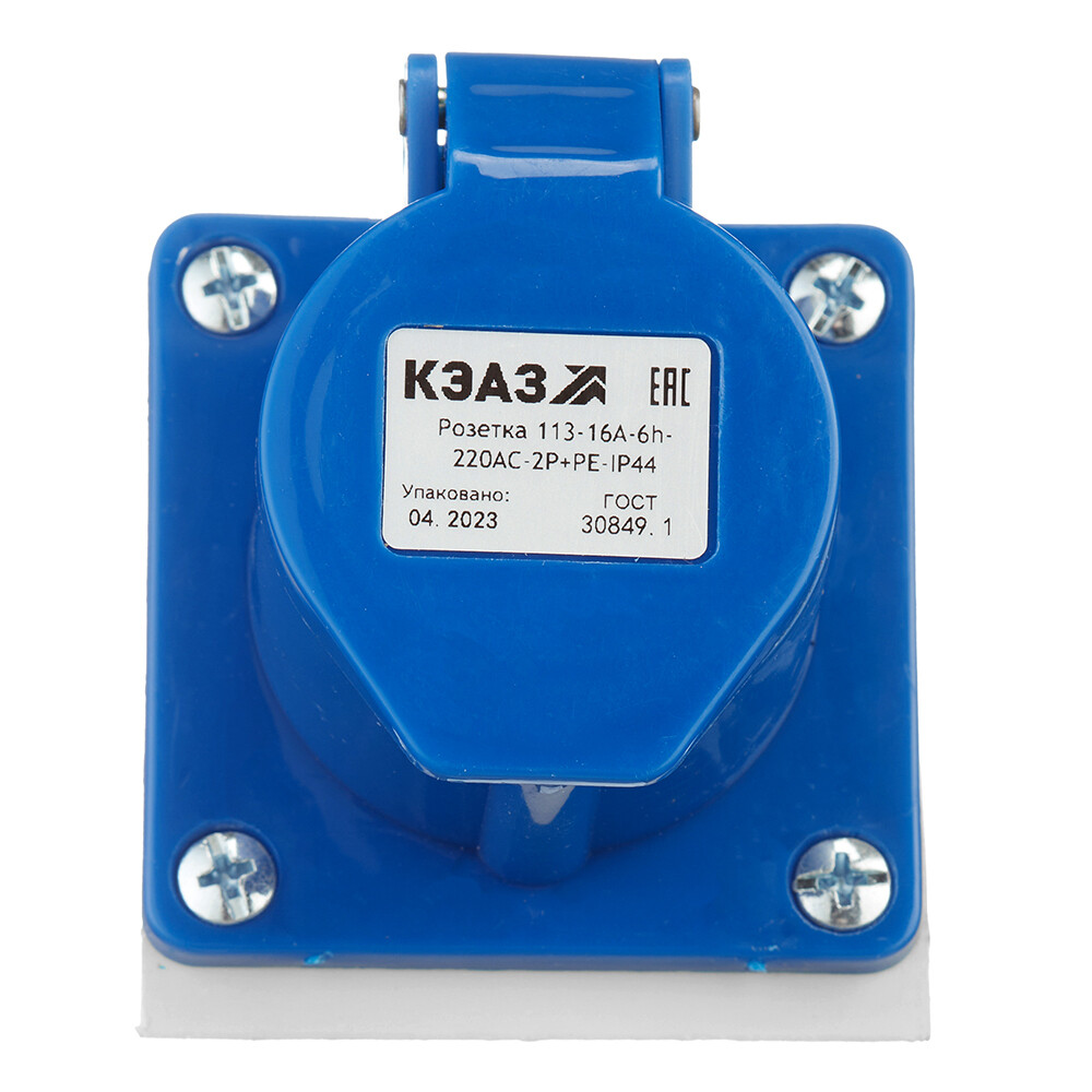 Розетка силовая угловая настенная КЭАЗ с заземлением 2Р+РЕ 16 А 220 В IP44 синяя (222746)