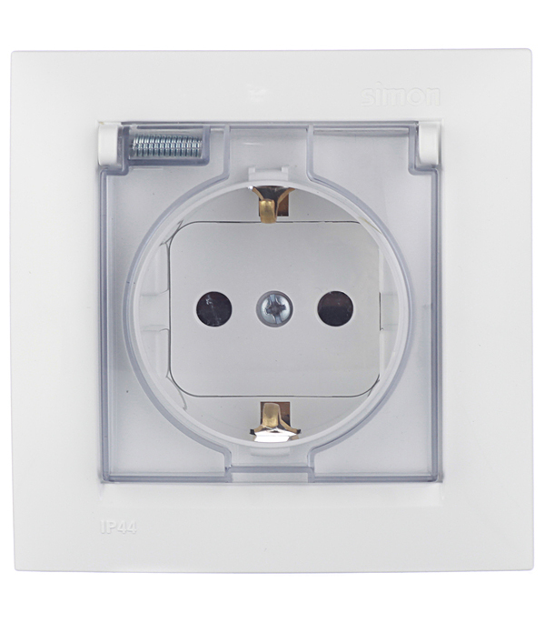 Розетка Simon 15 встраиваемая белая со шторками с крышкой (1590450-030)