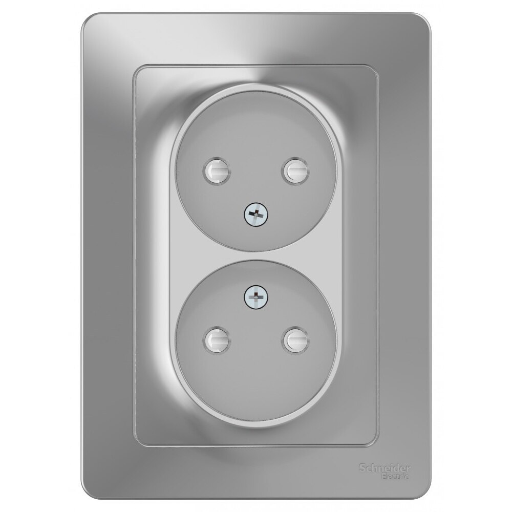Розетка Systeme Electric (ранее Schneider Electric) Blanca (алюминий, скрытой установки) двухместная, без заземления, со шторками предназначена для сетей до 250 В, на ток до 16А. Двухместная розетка позволяет подключить два устройства в одном месте. Шторки обеспечат дополнительную безопасность в помещении, где находятся дети.