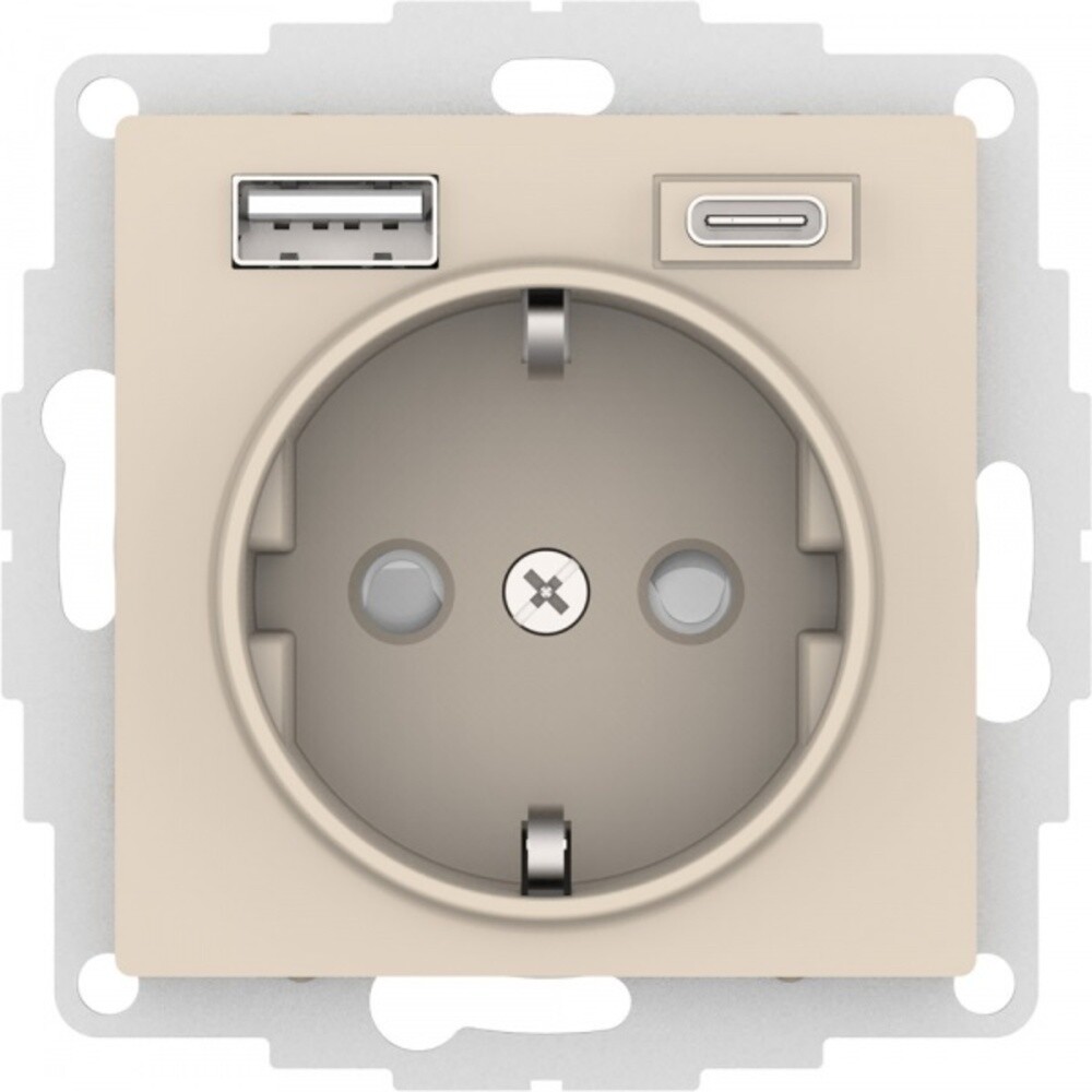 Розетка USB Systeme Electric AtlasDesign встраиваемая бежевая USB-A/ Type-C (ATN000232)