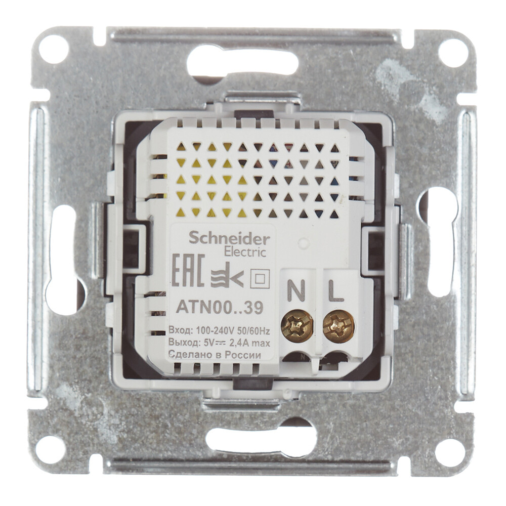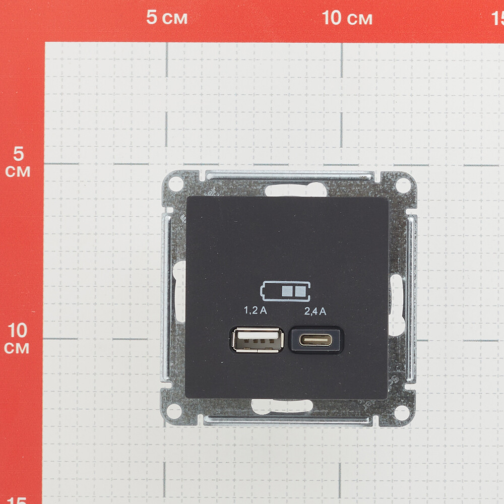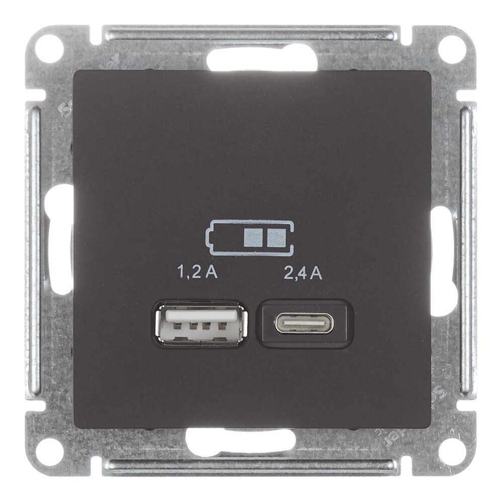 Розетка USB Systeme Electric AtlasDesign встраиваемая карбон USB-A/ Type-C (ATN001039)