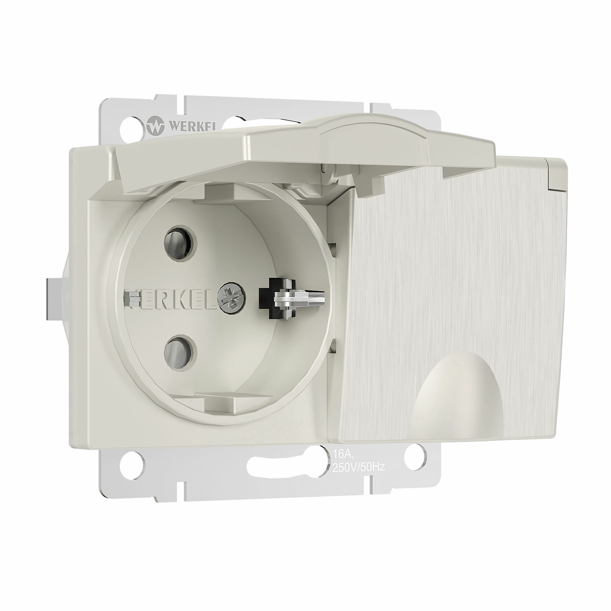 Розетка Werkel встраиваемая перламутровая рифленая со шторками с крышкой (a057289)