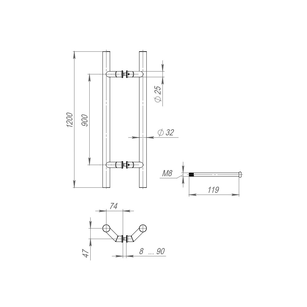 Дверная Ручка-скоба PH-45-32/1200-INOX из нержавеющей стали предназначены для установки на внутренние и наружные металлические, профильные и деревянные двери, на двери подъездов и технические двери с …